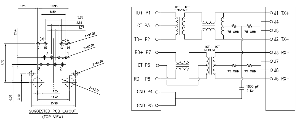 100Mb RJ45 Lan Jack Right Angle with LED Tab Up for VOIP Gateway Setup/ Router